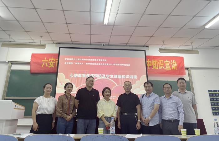 为进一步深化“主题党日活动”、“我为群众办实事活动”内涵,推动健康校园建设,加强大学生对心脑血管疾病相关知识的认知了解,提高广大学生的健康素养和自救急救能力,引导学生关注生活、关注健康,培养科学、自律的健康生活方式,9月20日,六安市人民医院神经内科主任翟宏江、主任医师刘勇、杨运周和汪秀勤等四位医疗专家应邀来BB贝博为教职工及学生做了关于心血管疾病预防及相关健康的知识讲座。学院党委副书记、纪委书记李艳、教工第二党支部党员教师与近200位学生参加了本次活动。活动由教工第二党支部书记孙传伯主持。