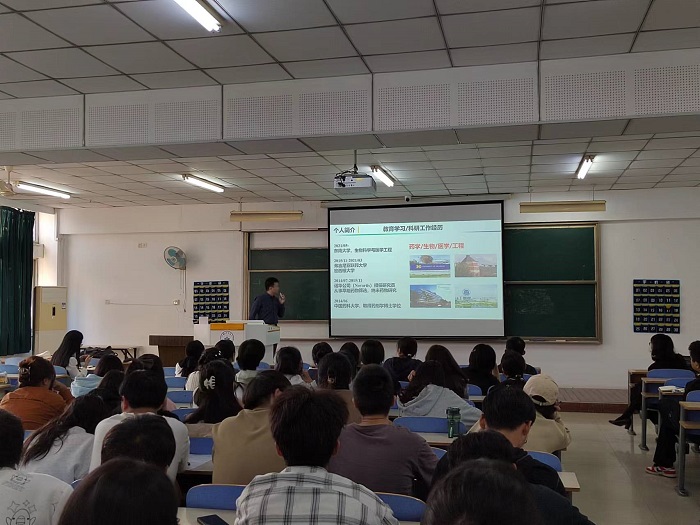杨芳以“纳米气泡药物递送系统”为主题,首先介绍了药物递送系统的研究背景、微纳气泡设计的原理和临床诊断应用,然后分享了其课题组在精准药物递送系统方面取得的工作成果。何泓良的报告题目为“改善血管健康的纳米药物设计”,以通俗易懂的方式介绍了血管疾病及其发病机制,然后围绕纳米药物精准调控斑块内脂质代谢和纳米酶改善动脉粥样硬化斑块炎性微环境两方面介绍了纳米技术在血管疾病中的应用。本次报告主要涉及纳米药物的设计思路和最新进展,紧扣前沿技术,深入浅出,对激发学生的探索热情、开拓学生视野起到积极作用。
