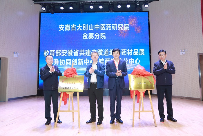 会上,校地共建“安徽省大别山中医药研究院金寨分院”和省部共建“安徽道地中药材品质提升协同创新中心BB贝博艾弗森官方网站分中心”举行了揭牌仪式。