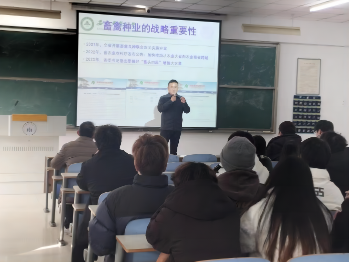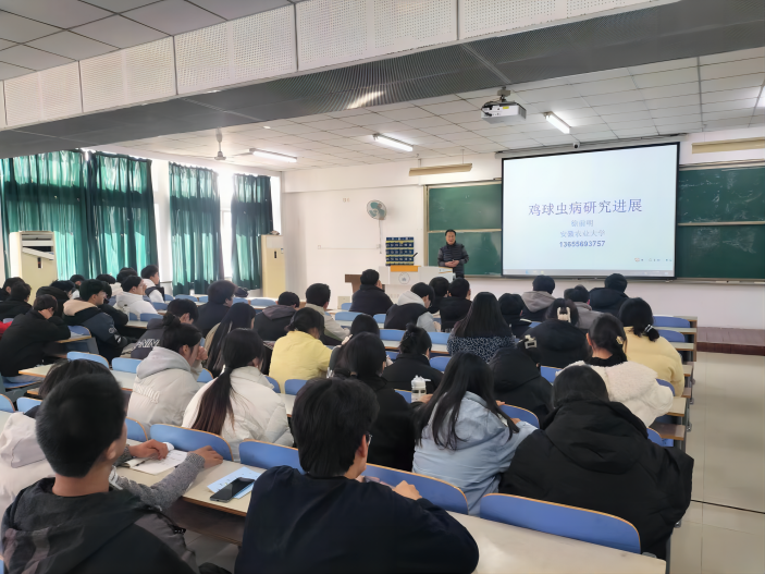 报告会上,张晓东主要从安徽省生猪种业发展概况、猪的育种技术进展及趋势、课题组近年来教育和科研工作进展、对猪产业的思考等方面展开报告,让学生对安徽省猪产业的发展现状有了一定的了解。徐前明主要从鸡球虫的生物学特性、鸡球虫免疫机制以及动物营养与免疫保护方面对鸡球虫病及防治相关研究进行了报告,使同学们了解到什么是鸡球虫,家禽生产过程中鸡球虫的危害及其防治措施。