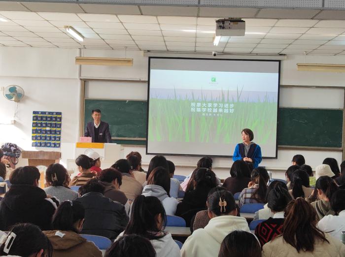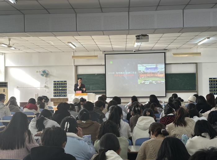 在交流会上,刘松结合个人毕业求职和初入职场的感受,引导学弟学妹在校期间要认真学习专业知识,尽可能的拓宽知识面,努力提升自己各方面能力,争取成为一个复合型人才,随后他分享了自己扎根基层,通过乡村运营模式探索出一条乡村振兴之路,实现了从一村致富到周边带富再到千村共富的成功经验,刘松结合创业经历,将宝贵经验与思考有效地传达给学弟学妹们。最后李艳对刘松的分享表示感谢,希望同学们在校友春风化雨的分享中汲取成长养分,切实提升自己综合素养,和校友一起在助力母校高质量发展的进程中勇创佳绩。