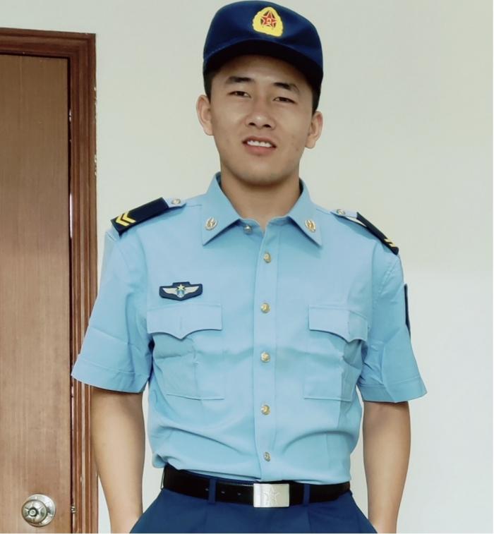 他在大一时了解了参军入伍的政策,为了实现自己曾经的军旅梦,他毅然选择了参军入伍,光荣的成为中国人民解放军的一员。在现实的严酷考验下,他承受着艰苦的训练和挑战,却从未放弃。作为一名军人,他秉持着不畏艰难、勇于迎难的精神,怀揣着乘风破浪的壮志与豪情。在部队期间他刻苦训练,通过不懈努力和艰苦的训练被评为“训练优秀新兵”。他坚定信心,严格要求自己,在第二年度中表现优异,被授予“嘉奖”并且被评为“四有士兵”。他认为部队带给他的不仅有强健的体魄,更有坚强的意志和一往无前的拼搏精神。