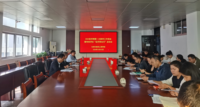 10月10日上午,生工学院在A楼301召开2024年秋学期第一次教学工作例会暨审核评估“迎评突击月”启动会。生工学院党委书记宣平,院长陈存武,全体教研室(实验室)主任、专业负责人、教研室副主任、审核评估突击队和专班人员参加了会议,会议由副院长刘东主持。