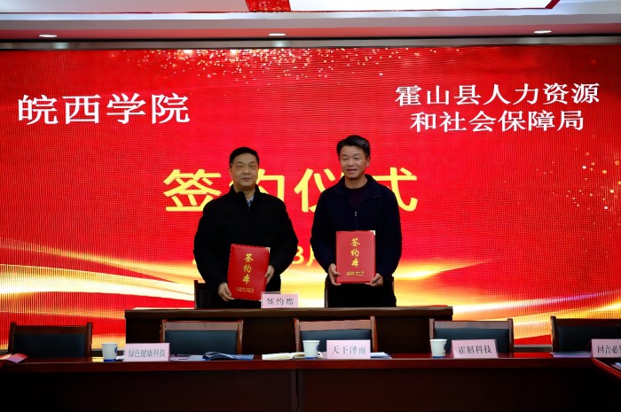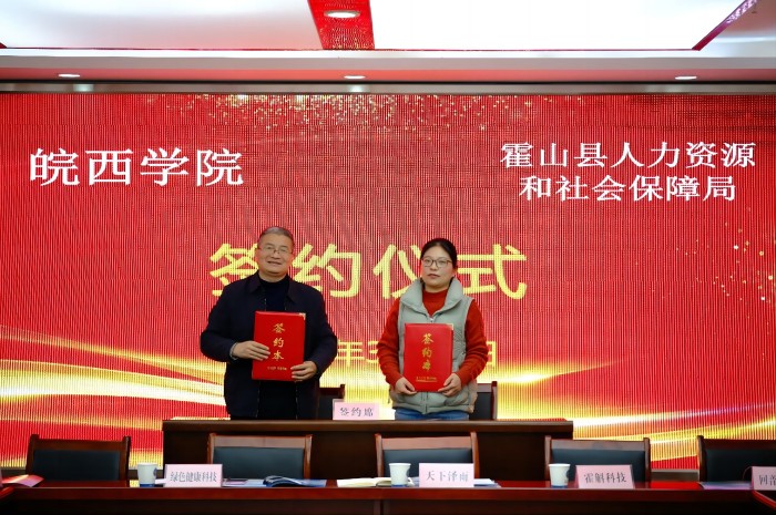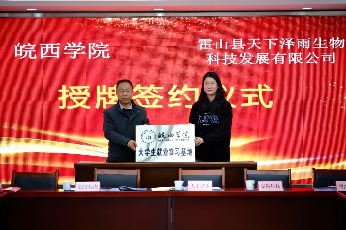 学生处和生工学院分别与霍山县人力资源与社会保障局签订校地人才供需合作协议书,生工学院与安徽大别山霍斛科技有限公司、霍山县天下泽雨生物科技发展有限公司签订《BB贝博艾弗森官方网站毕业生就业基地协议书》并举行了授牌仪式。