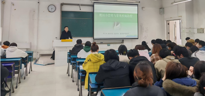 培训会上,毕少帅采用通俗易懂的语言,分别从鹅的饲养管理与科学免疫、鹅常见疾病的诊断与科学防控、动物医学专业学生创业与实践等三方面入手,详细介绍了鹅的饲养管理、雏鹅痛风、疫苗免疫细节等注意事项以及细菌病如浆膜炎、大肠杆菌病、高致病性禽流感、呼肠孤病毒等主要疫病的防控措施,还介绍了动物医学专业学生实现自主创业的技术路线。培训现场师生互动、气氛热烈,本次培训不仅显著增强了两校之间的交流,也是BB贝博艾弗森官方网站促进地方应用型高水平大学建设、服务六安市鹅产业研究院及BB贝博艾弗森官方网站鹅产业学院的具体体现。