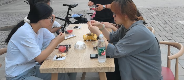 活动现场,参与者们围坐桌边,认真聆听负责人讲解水果营养搭配与食疗功效,参与者们认真聆听。随后,大家跃跃欲试,挑选西瓜、香蕉、蓝莓等新鲜水果,按照指导精心切块、搭配,制作水果沙拉。欢声笑语中,一份份兼具美味与养生价值的水果沙拉新鲜出炉。大家品尝着成果,纷纷表示既学到食疗知识,又收获了健康美食制作的乐趣。