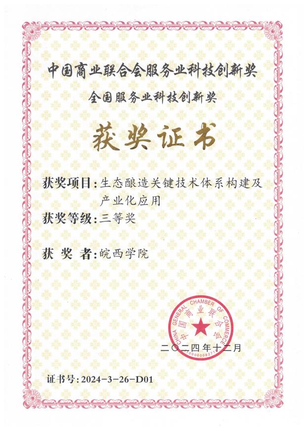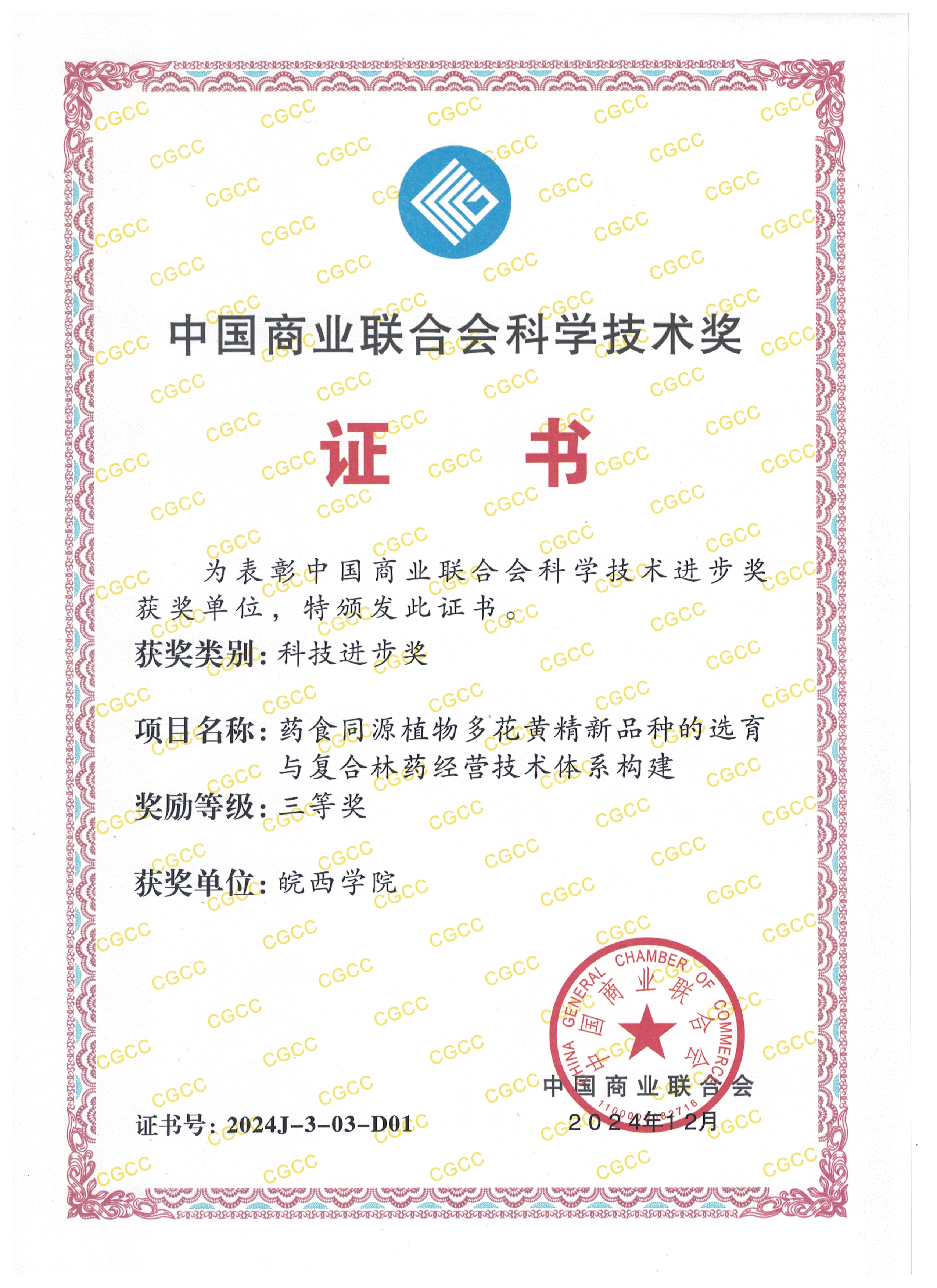 2025年7月20日,由中国商业联合会主办的2025年全国商业科技质量大会在北京友谊宾馆召开,会上举行了2024年度中国商业联合会科学技术奖和中国商业联合会服务业科技创新奖颁奖仪式。BB贝博艾弗森官方网站BB贝博艾弗森官方网站申报的“霍山石斛标准化种植及深加工产品开发与应用”与“药食同源植物多花黄精新品种的选育与复合林药经营技术体系构建”两项成果分别获2024年度全国商业科技进步奖二等奖、三等奖,“生态酿造关键技术体系构建及产业化应用”获2024年度中国商业联合会服务业科技创新奖三等奖。