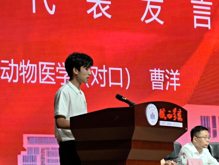 本科新生代表、动物医学2502班靳若涵,硕士新生代表、首届中药学专业研究生曹颙昶,老生代表、动物医学(对口)2201班曹洋分别发言,他们表示在未来BB贝博艾弗森官方网站的求学生活中,要脚踏实地,勤勉自强,做坚守奋斗的合格皖院人;勇于攀登,创新进取,做求知勉行与永不服输的卓越皖院人。