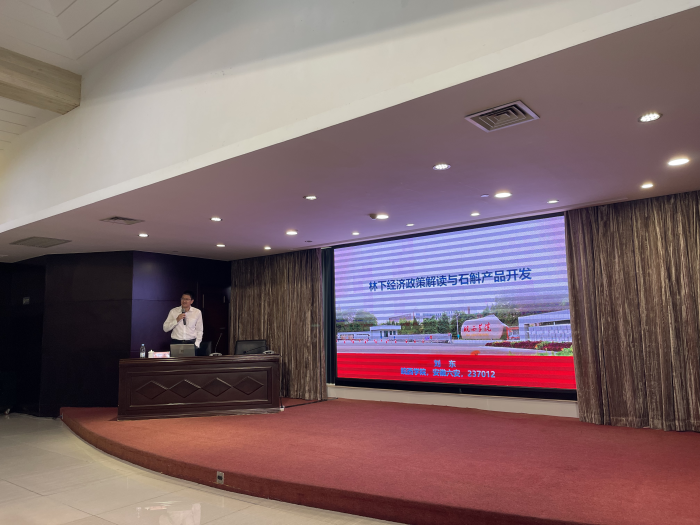 随后,刘东教授开展了题为《林下经济政策解读与石斛产品开发》的报告。报告紧密结合国家与地方政策,深入剖析了林下经济的发展前景与政策导向,并围绕霍山石斛产品深加工,探讨了其在大健康产品领域的创新路径,为推动霍山石斛产业链的延伸与升级提供了宝贵的思路。