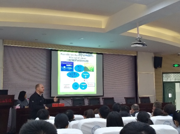 报告中,Thomas Hüster博士介绍了他所率领的科研团队历时30多年研究与开发出的植物源纯天然抗逆剂“碧护”系列产品的作用机制及其显著的植保功效、增产效果;Roelof Adriaan Buitendag博士介绍了安融乐作为植物体内活性物质快速转移的运输泡囊在植物生长过程中的神奇作用;Vladimir Martichekov博士介绍了项目组在澳大利亚开展的耕地修复最新技术及其研究进展。三个报告让同学们了解到国际上植物生长及土壤修复过程中新产品、新技术,拓展了视野,也为我国当前农业所面临的长期化学肥料施用过渡导致的农作物生长病虫害增加、土壤板结、产量下降等问题的解决提供了新思路,提升了专业素养,也进一步激发了同学们的学习兴趣。(图、文/邓辉 审核/陈乃富)