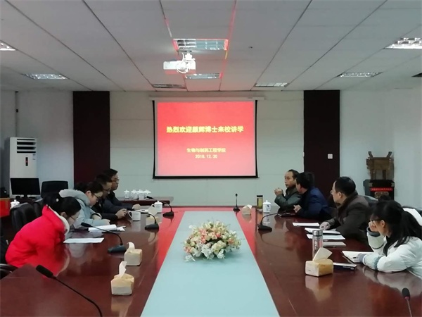 12月30日上午,生工学院邀请江苏科技大学颜辉博士在A301开展“近红外光谱技术的应用”学术交流,校党委委员、副校长陈乃富、科技处副处长韩邦兴、生工学院部分教师参加了交流会。