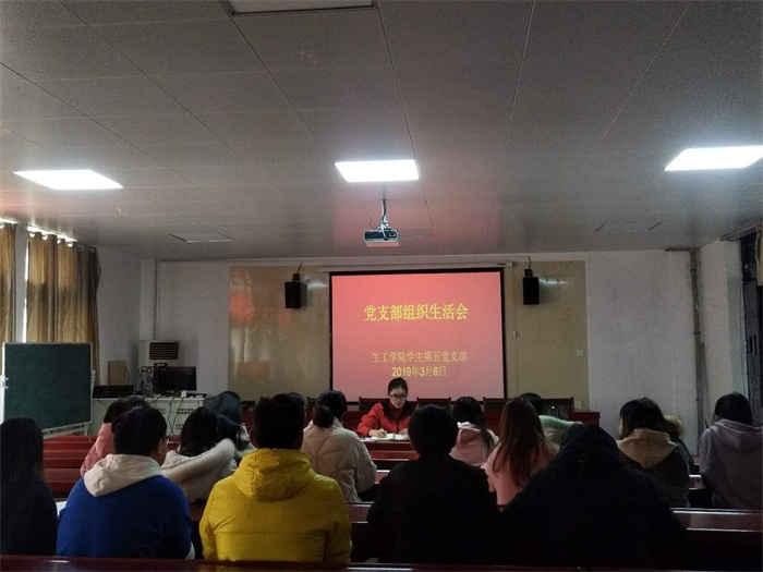 2019年3月6日下午,生工学院学生第五党支部在A201召开2019年度党员组织生活会。生工学院党委委员薛荷老师莅临督导。学生第五党支部全体党员参加会议。会议由学生第五党支部书记姜雪萍主持。首先,姜雪萍通报会前学习、准备(包括与党员谈心谈话)和征求对支部...