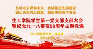 • 生工学院学生第一党支部举行支部大会暨纪念“九一八”事变90周年... 9月18日上午,生工学院学生第一支部在A201会议室召开了“总结过去谋划未来,持续推进支部建设”为主题的支部大会,段文昌同志以《铭记历史勿忘国耻,担起中国青年责任》为题给支部全体党员讲授了纪念“九一八”事件90周年的主题党课。学院党委组织员夏艳老师... 2021-09-18