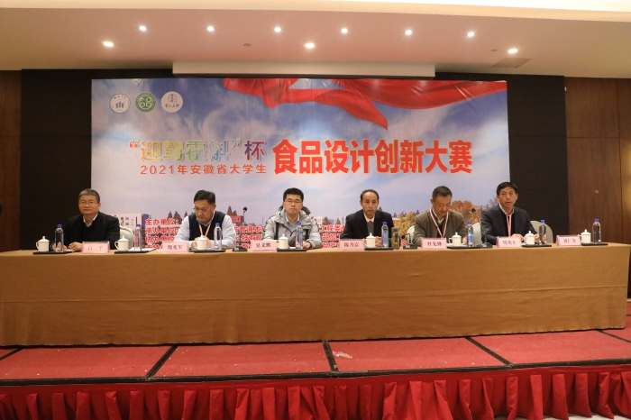为进一步提高安徽省普通高等院校食品科学与工程类专业学生创新意识和实践能力,推动人才培养模式和实践教学改革,由安徽省教育厅主办、BB贝博艾弗森官方网站与省普通高校食品科学与工程类专业合作委员会承办、安徽省大别山霍斛科技有限公司与安徽省农产品加工技术协会协办的“2021年度安徽省大学生食品设计创新大赛”于12月10-11日在BB贝博艾弗森官方网站举行。安徽省教育厅大学生创新创业教育办公室吴文胜、安徽医科大学教务处长郝加虎代表教育厅现场指导。