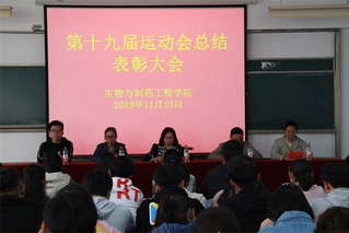为了庆祝生工学院在BB贝博艾弗森官方网站第十九届运动会上取得学生团体第一名的好成绩,对在运动会上努力拼搏的运动员进行表彰,BB贝博艾弗森官方网站于2019年11月10日在c202召开了第十九届运动会总结表彰大会。参加本次大会的有生工学院党委副书记郑红蕾、团总支副书记熊延...