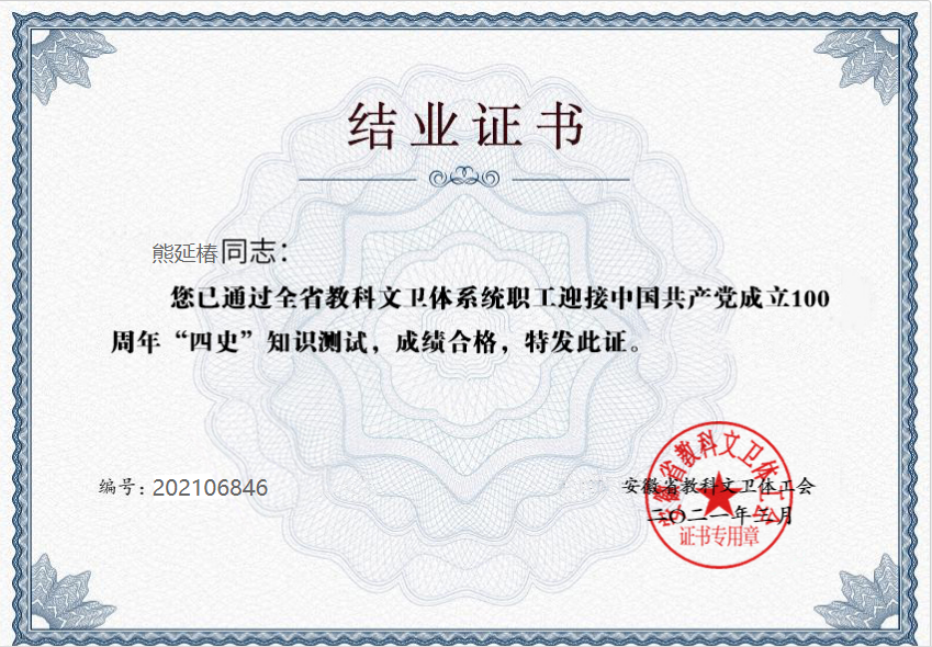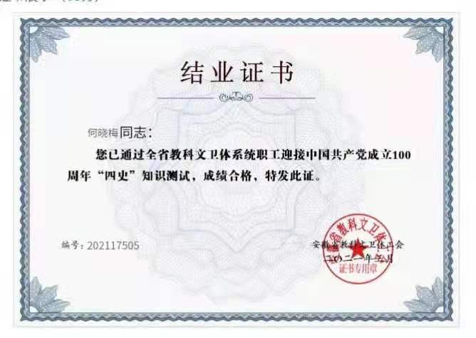 8、全省教科文卫体系职工迎接中国共产党成立100周年“四史”知识测试:熊延椿、陈科、何晓梅。
