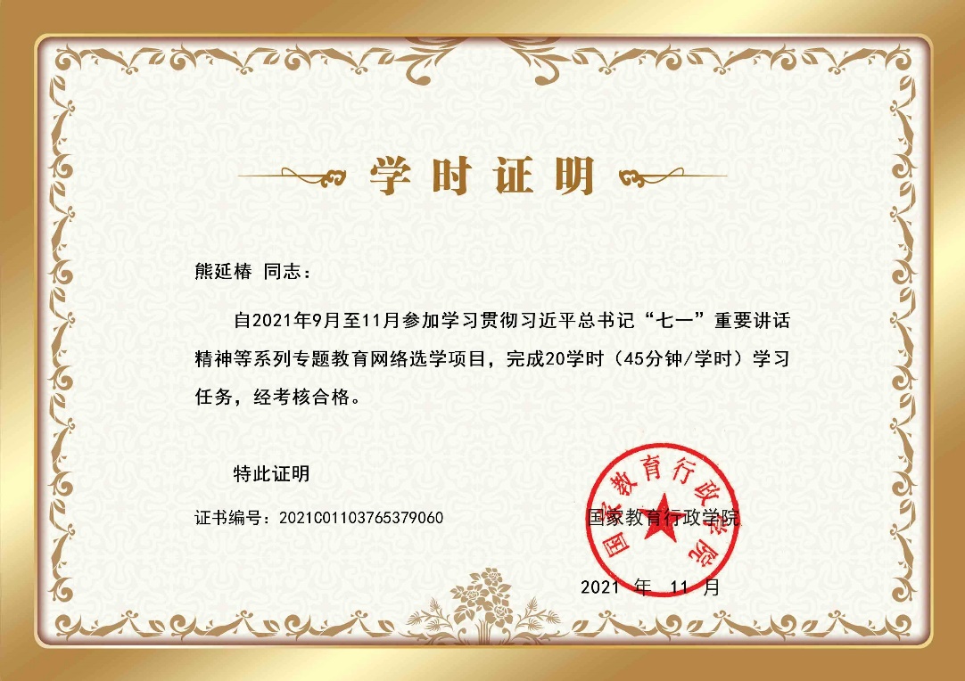 6、学习贯彻习近平总书记“七一”重要讲话精神等系列专题教育网络培训:熊延椿。