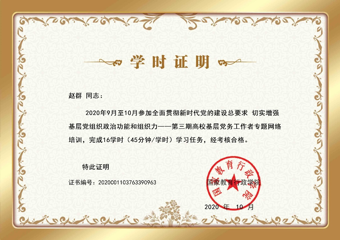 2、第三期高校基层党务工作者专题网络培训:孙传伯、何晓梅、赵群。