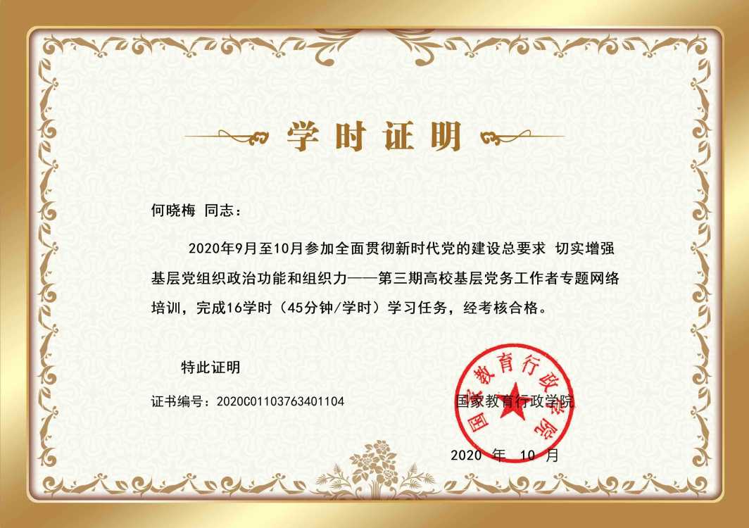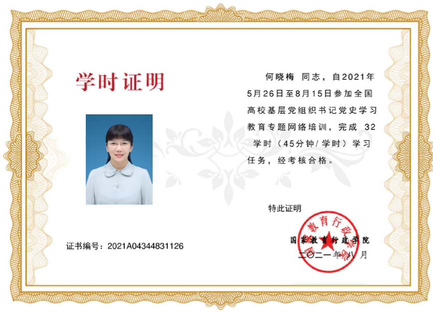 9、全国高校基层党组织书记党史学习教育专题网络培训:何晓梅。
