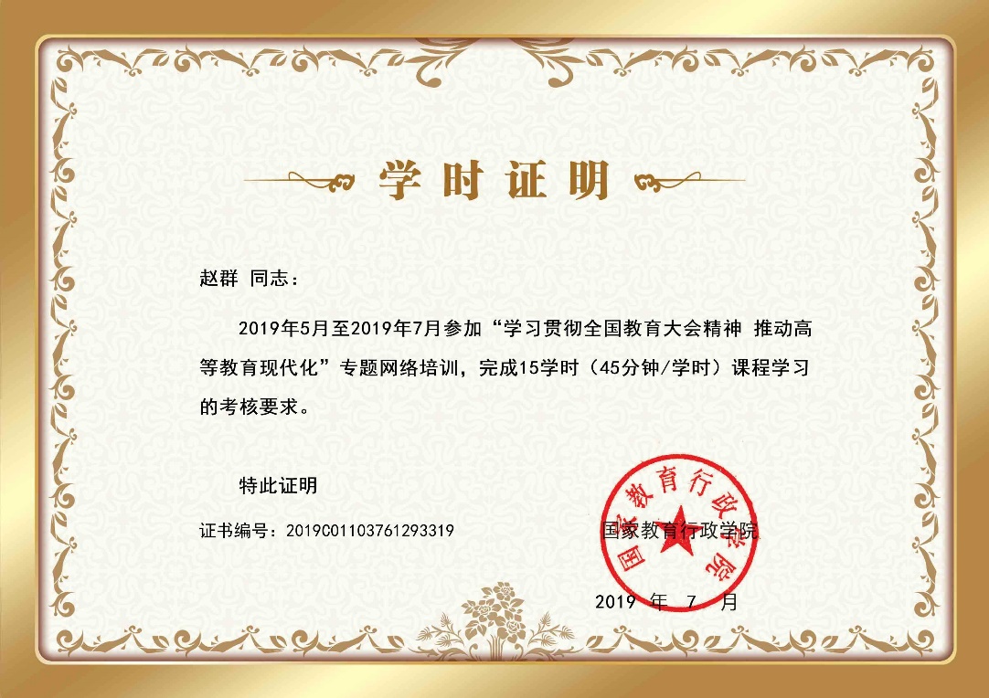 5、学习贯彻全国教育大会精神推动高等教育现代化专题网络培训:赵群。