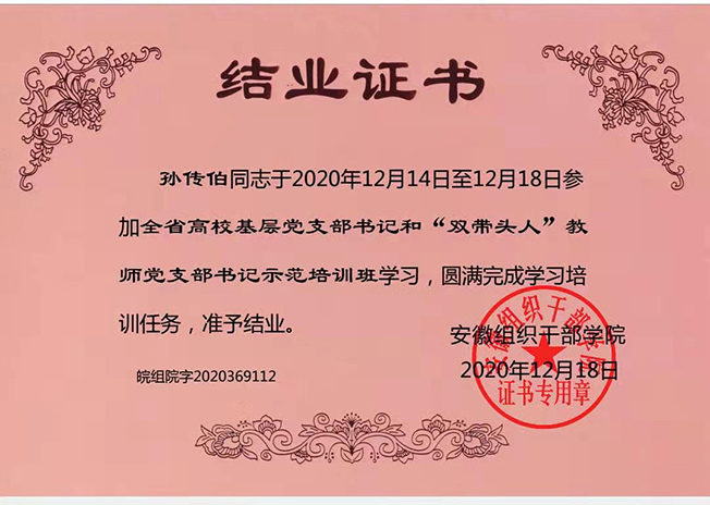 10、全省高校基层党支部书记和“双带头人教师党支部书记示范培训:孙传伯。