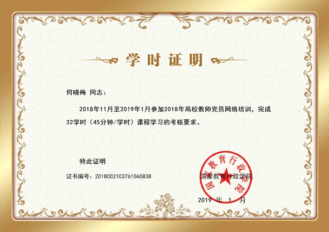 1、高校教师党员网络培训(2018-2019):孙传伯、何晓梅。