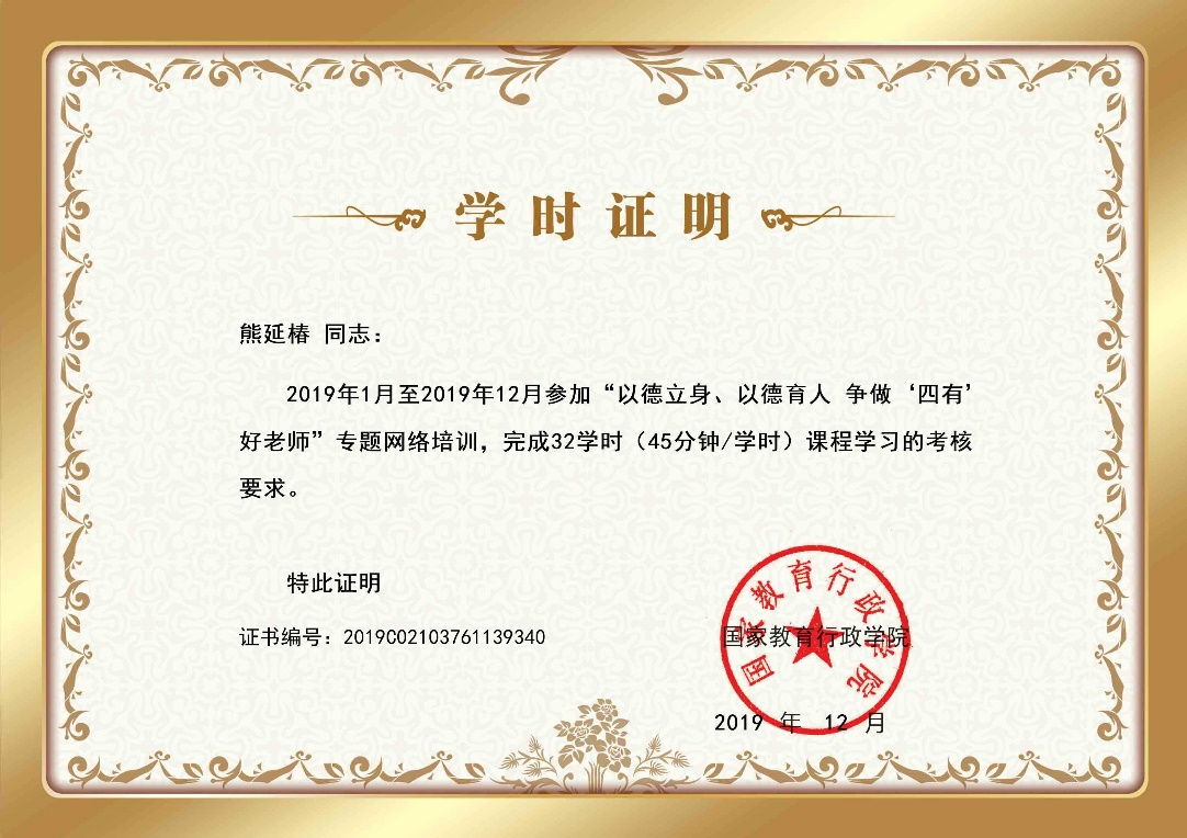 7、“以德立身、以德育人争做四有好老师”专题网络培训:熊延椿。