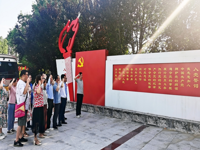 重温入党誓词,坚定初心使命。在东沙梗革命人物展览馆门前,所有党员同志面对鲜红的党旗,举起右臂,庄严宣誓,重温入党誓词。开展重温入党誓词活动,使全体党员更加坚定了初心使命,更加确立了全心全意为人民服务的宗旨,全体党员纷纷表示,将在日后的工作和生活中,坚定立德树人根本任务,坚持为党育人、为国育才的使命担当,不怕艰难、砥砺前行。