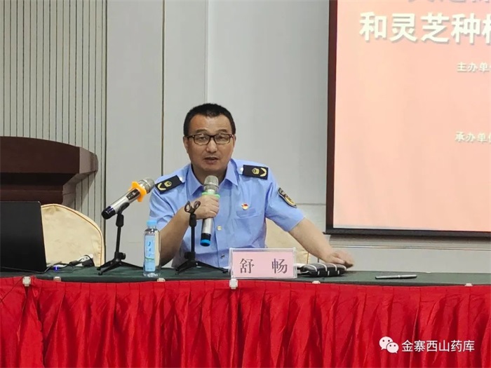 随后县市场监管局执法大队大队长舒畅通过一些现实案例,讲解了灵芝依法生产、规范经营、正当竞争等问题,特别是宣传用语、产品标签、微生物污染控制、地理标志证明商标使用、加工授权、商标授权等方面的注意事项,为企业的品牌建设提出了建设性建议。