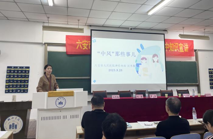 为进一步深化“主题党日活动”、“我为群众办实事活动”内涵,推动健康校园建设,加强大学生对心脑血管疾病相关知识的认知了解,提高广大学生的健康素养和自救急救能力,引导学生关注生活、关注健康,培养科学、自律的健康生活方式,9月20日,六安市人民医院神经内科主任翟宏江、主任医师刘勇、杨运周和汪秀勤等四位医疗专家应邀来BB贝博为教职工及学生做了关于心血管疾病预防及相关健康的知识讲座。学院党委副书记、纪委书记李艳、教工第二党支部党员教师与近200位学生参加了本次活动。活动由教工第二党支部书记孙传伯主持。