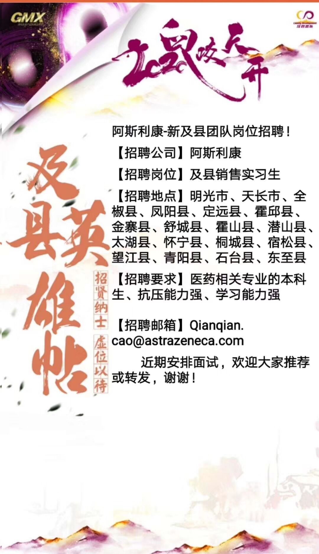 阿斯利康招聘简章