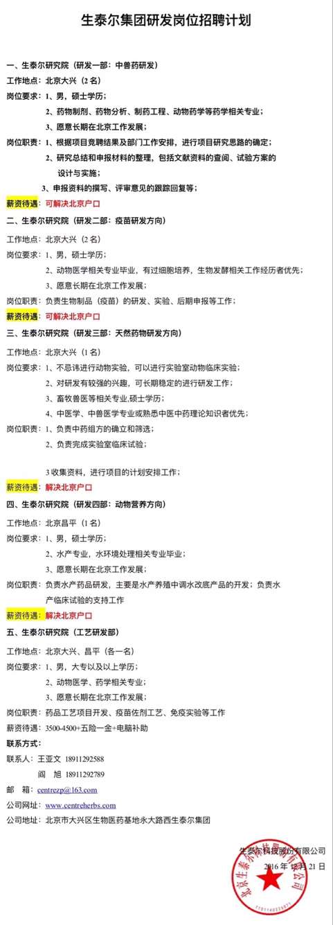 生泰尔集团研发岗位招聘计划