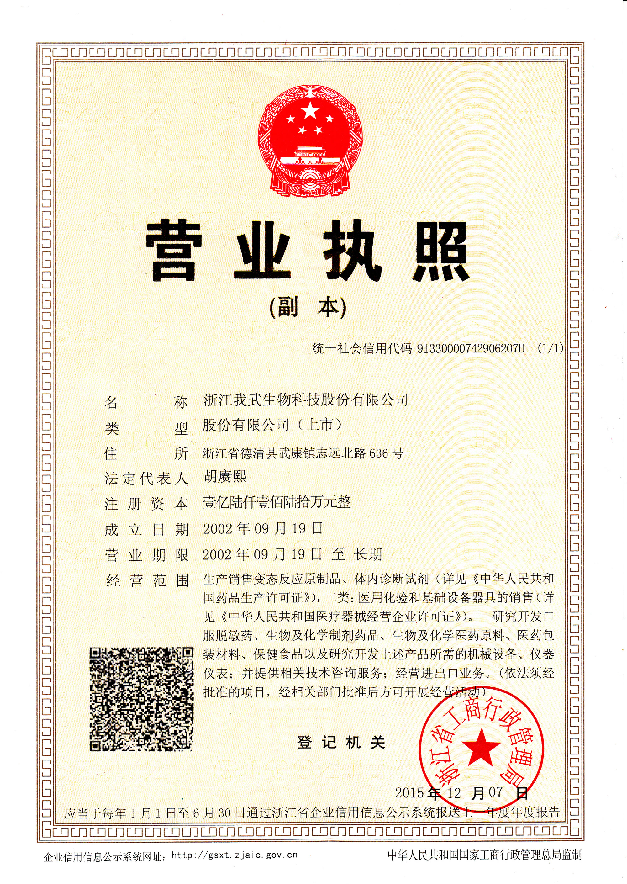 浙江我武生物科技股份有限公司是一家高科技生物制药企业,2014年1月于深交所上市,证券代码300357。公司专业从事过敏性疾病诊断及治疗产品的研发、生产和销售,是目前国内唯一能够提供舌下含服脱敏药物的企业和亚洲最大的脱敏药物及过敏原检测试剂生产商!现...