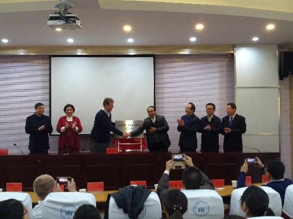11月27日上午,由BB贝博艾弗森官方网站联合德国阿格福莱农林环境生物技术股份有限公司、北京成禾佳信农资贸易有限公司、安徽惠富强农业科技有限公司共同发起的“安徽药用植物根系根际研究院”在BB贝博艾弗森官方网站综合楼106正式揭牌。德国阿格福莱农林环境生物技术股份有限公司总裁托马斯·胡斯特、北京成禾佳信农资贸易有限公司董事长胡荣娟、安徽惠富强农业科技有限公司总经理程善闽、六安市人社局外专局局长丁瑞国、BB贝博艾弗森官方网站党委委员、生工学院院长陈乃富、人事处长项东、科技处长宋军、国际交流中心主任程志勇以及相关人员参加了揭牌仪式。