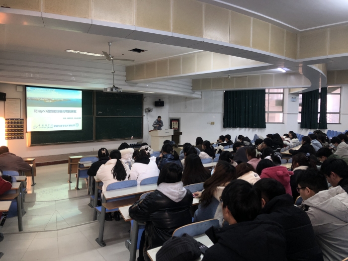 报告会上,洪波围绕“新药研发过程”、“癌症与癌症药物”以及“靶向P53通路抗癌药物“等三个方面系统阐述了新药研发以及其在癌症治疗中的应用,系统全面,由浅入深,报告反响强烈。