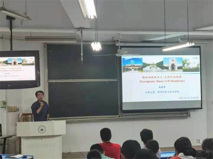 本次讲座深入浅出地介绍了药剂方向研究的学术前沿,拓宽了学生的视野,让学生对科学研究有了一定的理解,激发了学生的科研兴趣,对学生今后的发展起到很好的指引作用。(图、文/刘东 审核/陈存武)