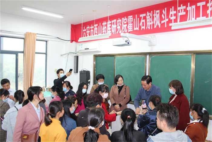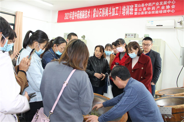 培训会上,霍山县职业学校中药学专业硕士宋衡系统地讲授《中药炮制基础知识》,县中药产业发展中心李世海、中国中药霍山石斛科技有限公司总经理孙大学联合讲授“霍山石斛枫斗的加工制作技术”,会议聘请从事石斛产业研发多年的专家何祥林、戴亚峰等对学员进行实际操作现场考评,同时对学员进行了理论考试,参训学员经考核合格者颁发培训合挌证书。