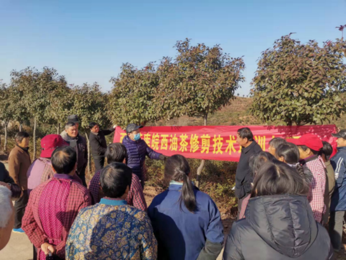 12月18日,为助力皖西大别山乡村振兴,提升木本油料油茶的抚育管理技术,推进皖西油茶产业发展,助力木本油料提质增效。由BB贝博艾弗森官方网站西山药库研究院、BB贝博艾弗森官方网站、环境与旅游学院牵头,六安市林业局和安徽农业大学共同协作,在六安市裕青绿色农业科技有限公司油茶示范栽培基地,举办了“油茶整形修剪技术培训与观摩”活动,周边村庄近40名老百姓参加培训。