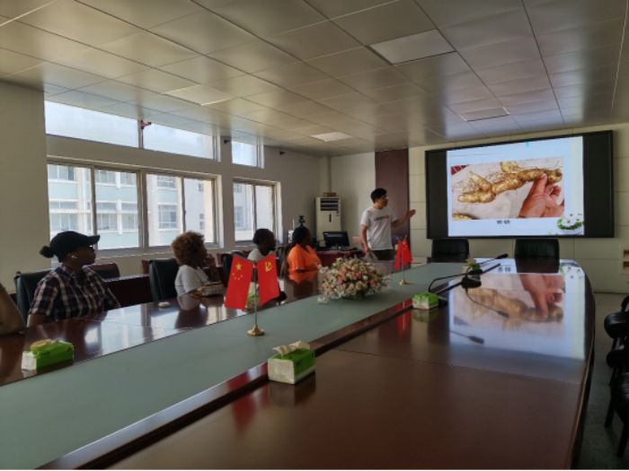 为了落实专题讲座课程“中药文化”,生工学院精心安排课程内容,设置了课堂理论讲座与基地现场考察两个环节。理论讲座分别由上海中医药大学中药学博士林启焰、广州中医药大学中药学博士孙朝跃、安徽中医药大学中药资源硕士徐涛承担。林启焰从身边常用的中药入手,带领留学生走进传统中医药世界,与留学生进行愉快的交流,先后解答留学生对中药文化的诸多疑问。孙朝跃结合人体日常需求,重点介绍人参、黄精等补益类的中药,并结合中药标本馆和大别山珍稀药用植物园的中药材,普及中药文化。徐涛重点介绍了一些产自非洲的中药材的药理药效,在推广中医药文化的同时,也瞬间缩小了与留学生的交流隔阂,教学效果显著。